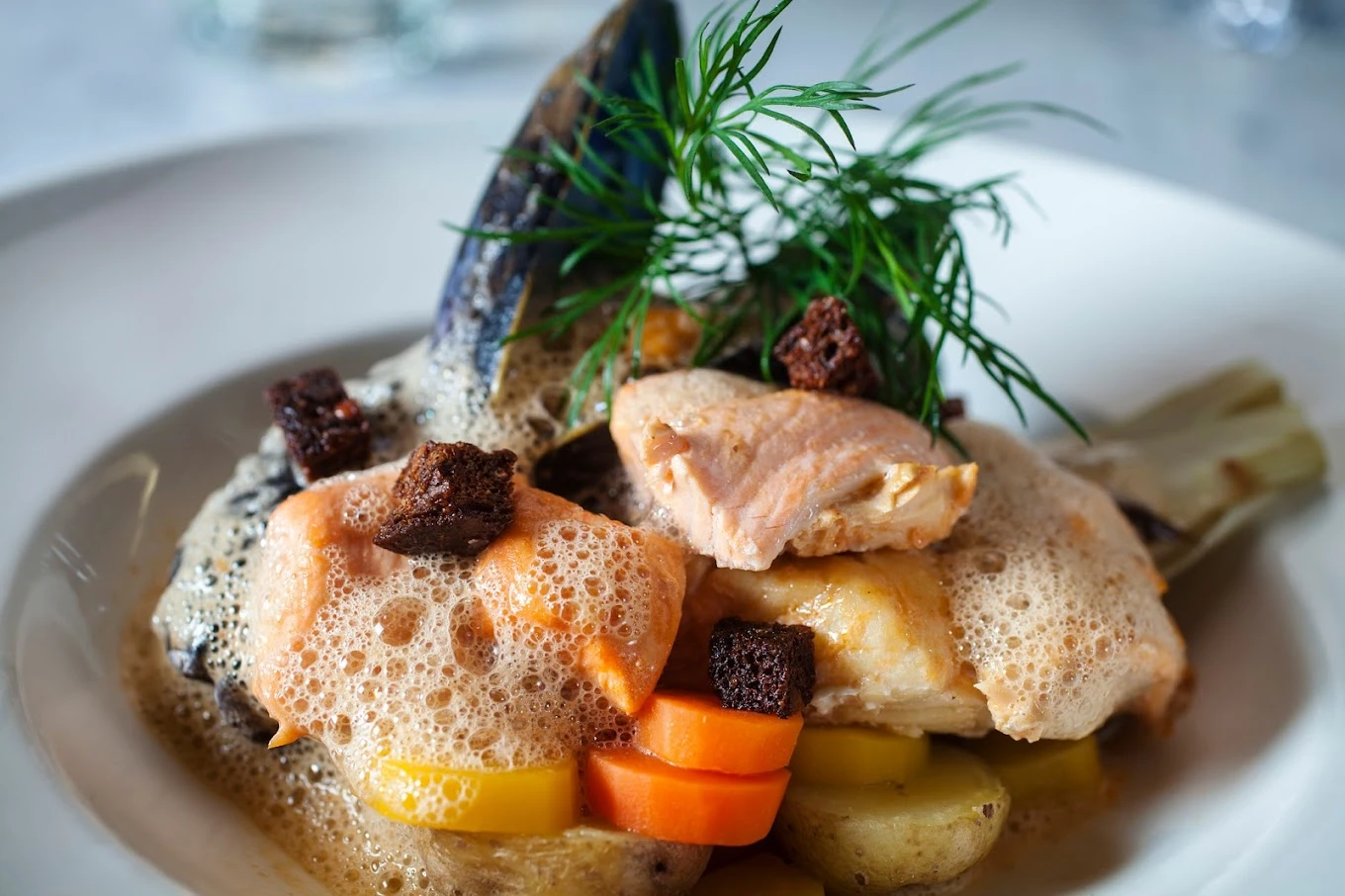 Medan du njuter av den hänförande panoramavyn kan du förvänta dig kulinariska upplevelser i världsklass. Börja med en ölpocherad hummer, vars saftiga kött smälter i munnen. Följ upp med en rejäl bit piggvar, vars delikata smak kommer att kittla dina smaklökar. Varje bord erbjuder en oslagbar utsikt över staden, vilket gör Brasserie Draken till den perfekta platsen att skapa minnen som varar en livstid.