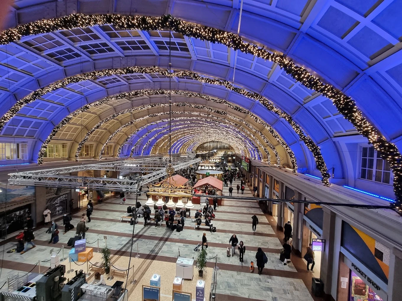 Stockholms Centralstation, en imponerande knutpunkt som erbjuder en bekväm och smidig reseupplevelse. Den rymliga hallen, som rymmer ett brett utbud av butiker och matställen, ger resenärer allt de behöver för att göra sin resa så trevlig som möjligt.